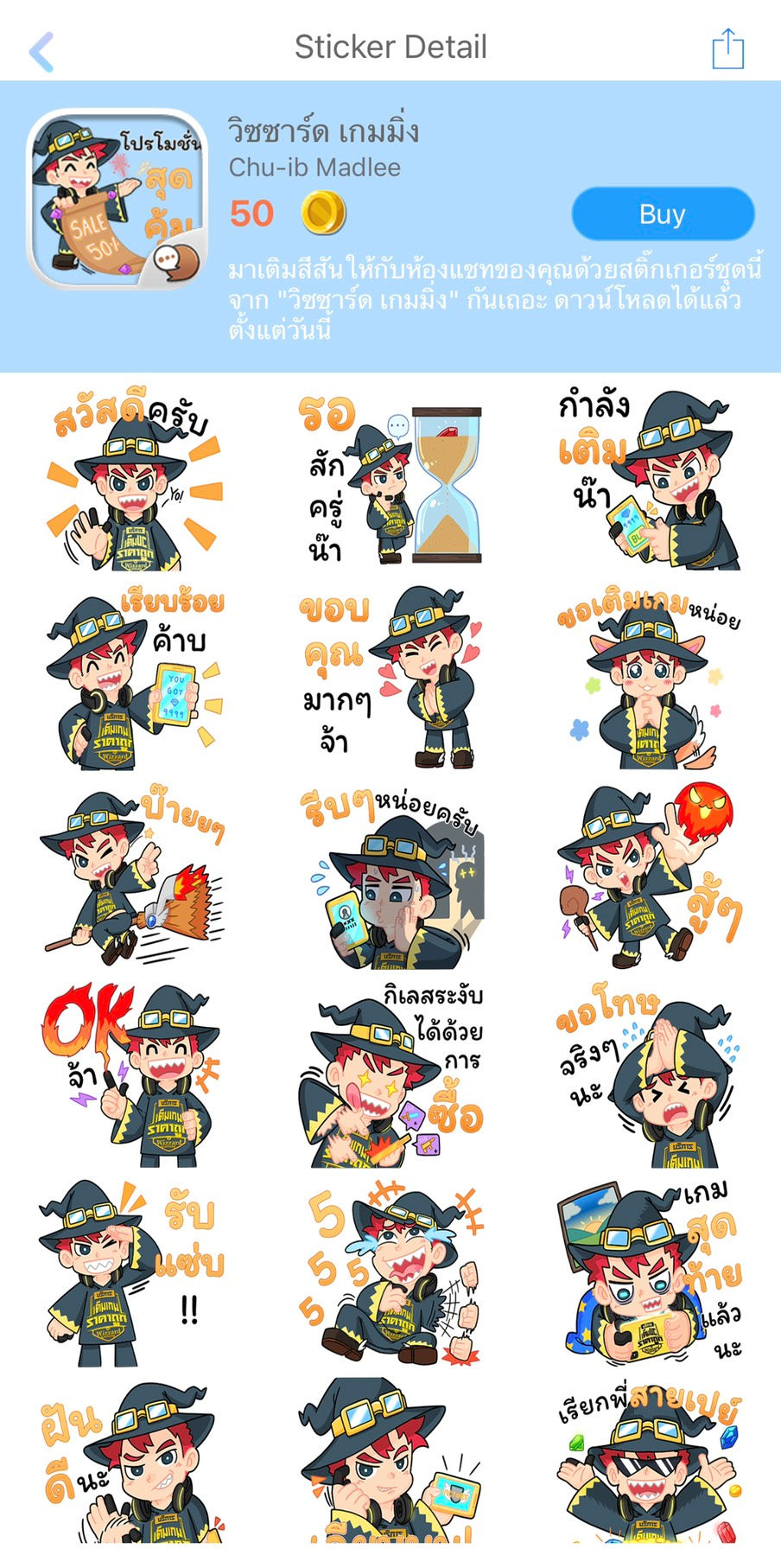 มาเติมสีสันให้กับห้องแชทของคุณด้วยสติ๊กเกอร์ชุดนี้จาก "วิซซาร์ด เกมมิ่ง" กันเถอะ ดาวน์โหลดได้แล้วตั้งแต่วันนี้